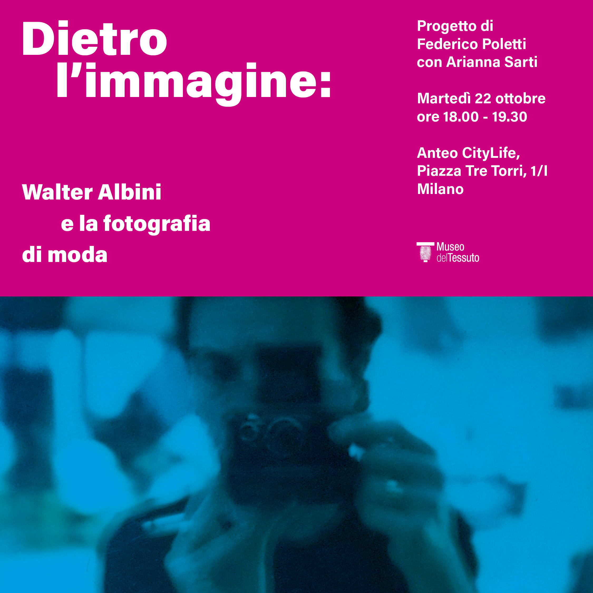 proiezione del video racconto “Dietro l’immagine: Walter Albini e la fotografia di moda” che sarà accompagnata da un talk condotto da Federico Poletti e Arianna Sarti in dialogo con Carla Sozzani, Maria Vittoria Backhaus, Emmanuele C. Randazzo e altri personaggi del mondo cinema, fotografia e moda.