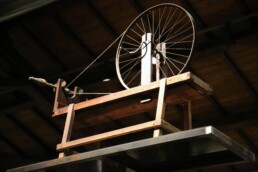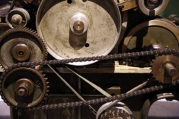 Telai manuali, follatrice, macchina battitora, strumenti di preparazione alla tessitura, come filatoi, incannatoi, orditoi, di manifattura italiana o, in alcuni casi, frutto di elaborazioni e di accorgimenti realizzati in loco per la produzione pratese.