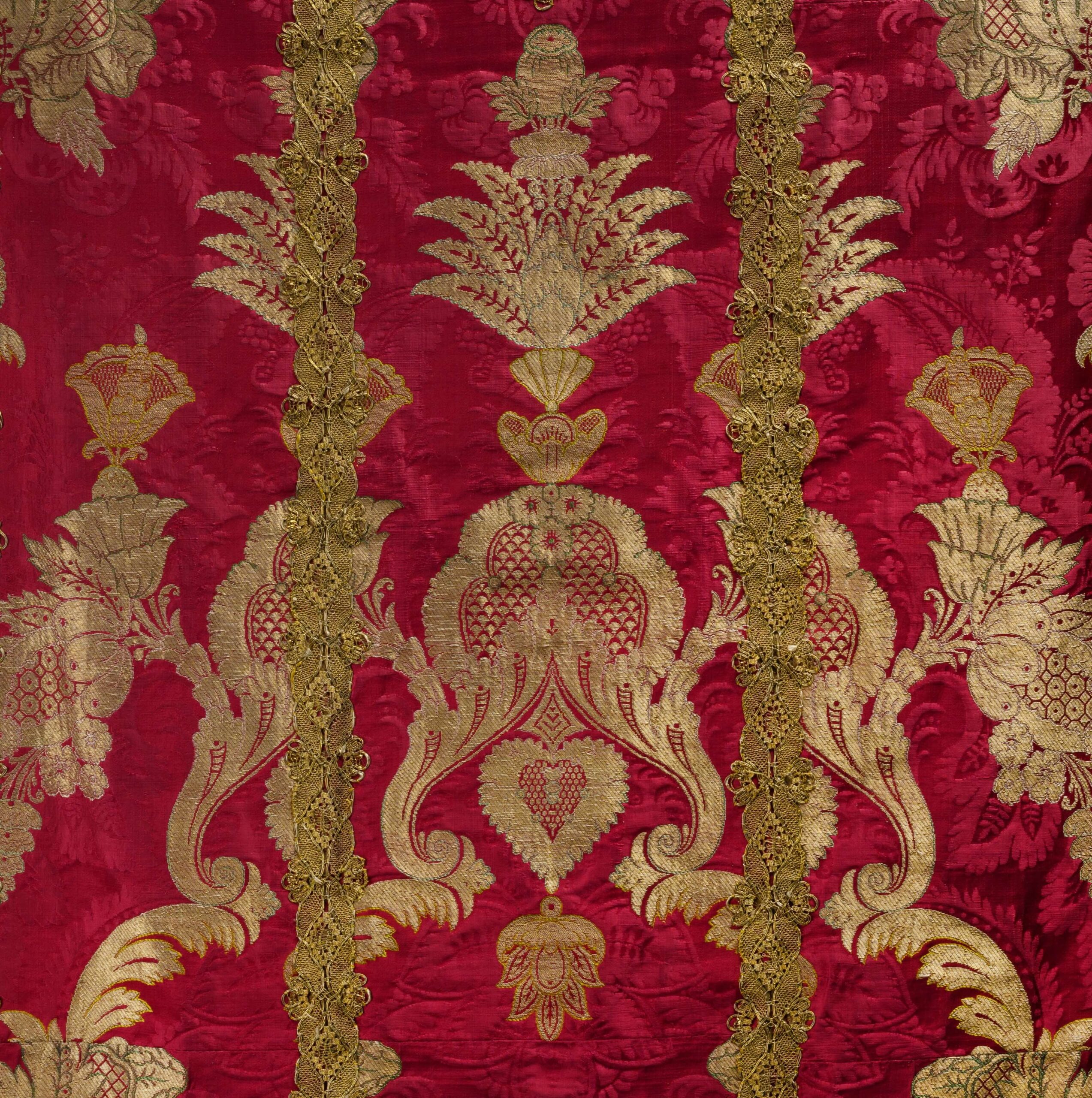 In the 17th century, Italian textile manufactures were experiencing a critical period due to the shrinking European market caused by wars, famines and plagues; they therefore reorganised with a more varied range of products and designs that used less silk than the classic golden drapes of the previous century.