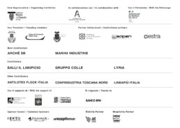 Si ringraziano inoltre per l’importante supporto al progetto le aziende tessili Arché, Marini Industrie, oltre che Balli il Lanificio, Gruppo Colle, Lyria, Antilotex Flock Italia, Confindustria Toscana Nord, Lineapiù Italia e le aziende del Museo del Tessuto Textile Lovers.