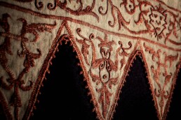 Nei suggestivi ambienti della sala storica un’affascinante selezione di manufatti, preziosi ricami, trine e tessuti dal rinascimento alle campionature del Novecento, ricercati e conservati con l’obiettivo di favorire, attraverso l’insegnamento di queste antiche professioni, una nuova prospettiva di emancipazione sociale e mantenere vive le tecniche tradizionali di fronte alla meccanizzazione del settore all’inizio del secolo scorso.