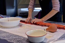 La felt-maker inaugura la sua prima personale in Italia, a Prato, con una selezione di tredici opere in feltro e un lavoro site-specific pensato per dialogare con gli spazi industriali della Campolmi