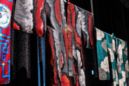 L’ installazione, presentata in alcune fiere di settore ma per la prima volta in ambito museale, mostra al pubblico lavorazioni manuali e sperimentazioni tecniche che vanno oltre l’esercizio stilistico, celebrando la creatività della produzione tessile contemporanea.
