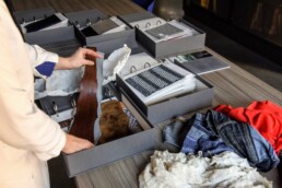 Per designer, creativi studenti e progettisti di moda riconoscere le diverse tipologie merceologiche e allenare la manipolazione dei materiali è fondamentale. Questa sezione illustra, grazie a centinaia di campioni, le principali lavorazioni e produzioni tessili: dai tartan agli chanel, dai plissè ai velluti, dalle gabardine ai panni.
