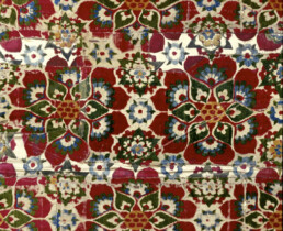 I velluti prodotti tra Quattrocento e Cinquecento si caratterizzano per un disegno medio-grande ed una destinazione d’uso variabile: per arredamento, paramenti sacri e abbigliamento. Questa particolare lavorazione raggiunge all’inizio del secolo XV in Italia una qualità ed una raffinatezza molto elevate. Il primo statuto che regolava l’attività dei tessitori di velluti è quello lucchese del 1376, in cui venivano stabiliti i criteri per creare i drappi di migliore qualità. Sicuramente si deve ai lucchesi l’introduzione o il potenziamento della fabbricazione dei velluti a Firenze, Genova e Venezia, città dove si stabilirono comunità di tessitori lucchesi che insegnarono questa preziosa lavorazione. Già ai primi decenni del XV secolo Firenze raggiunge un altissimo livello tecnico come dimostrano gli esemplari conservati nelle nostre collezioni.