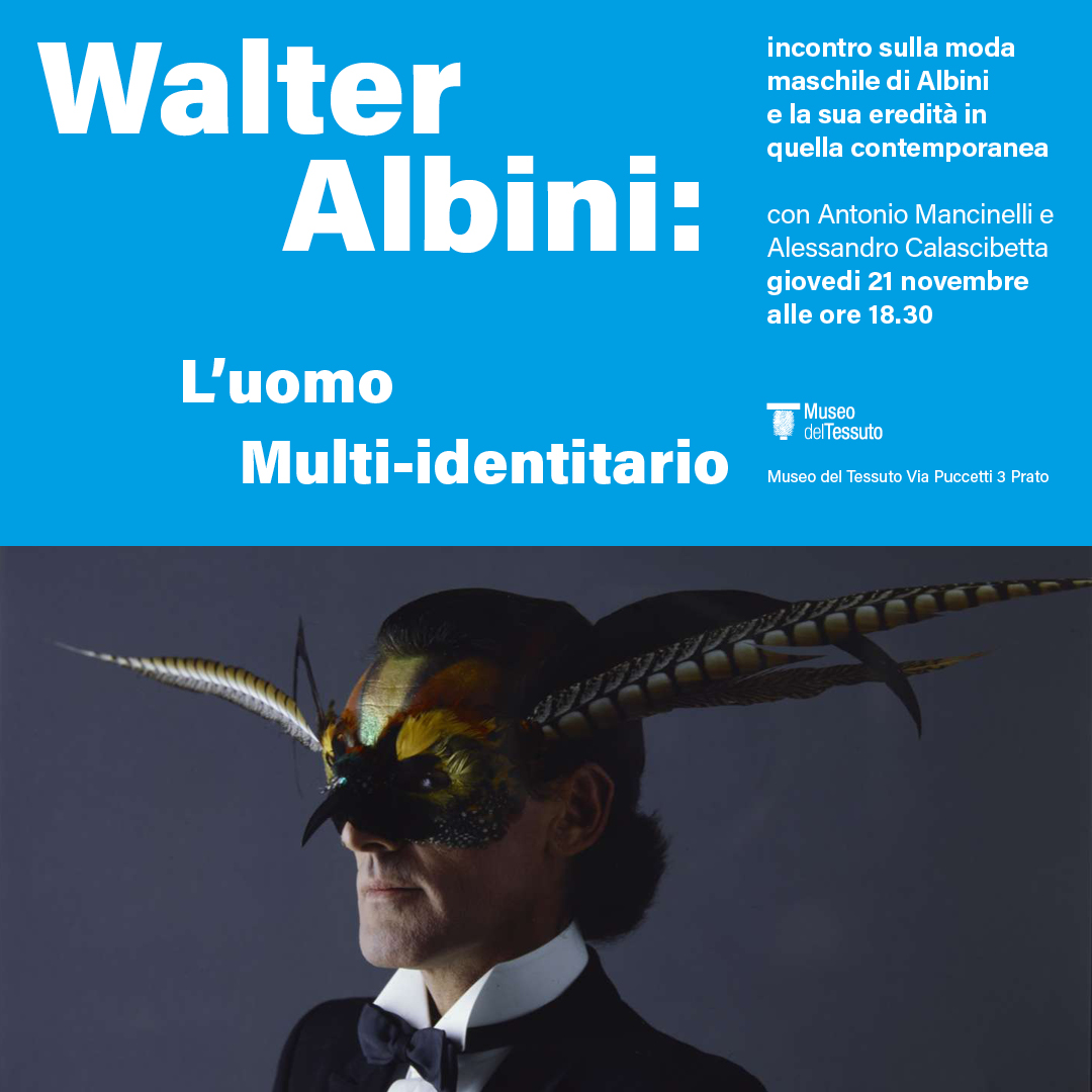 Il Museo del Tessuto di Prato, il 21 novembre alle 18.30, nell’ambito della mostra “Walter Albini. Il talento, lo stilista”, invita a scoprire la visione della moda maschile dello stilista che non ha solo rivoluzionato il guardaroba di lei, ma ha immaginato un nuovo, seducente orizzonte estetico per lui.